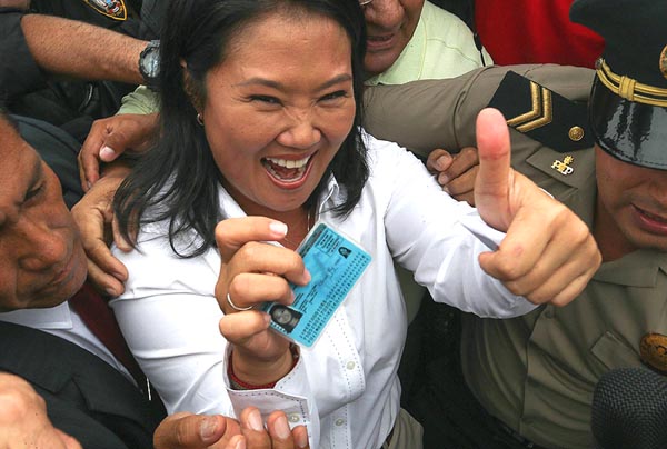 La candidata peruana a la Presidencia del partido Fuerza Popular (FP), Keiko Fujimori, alcanza 39,73% de los votos emitidos en los comicios del pasado 10 de abril, tras procesarse 95,19% de las actas.(Xinhua/Norman Cordova/ANDINA)