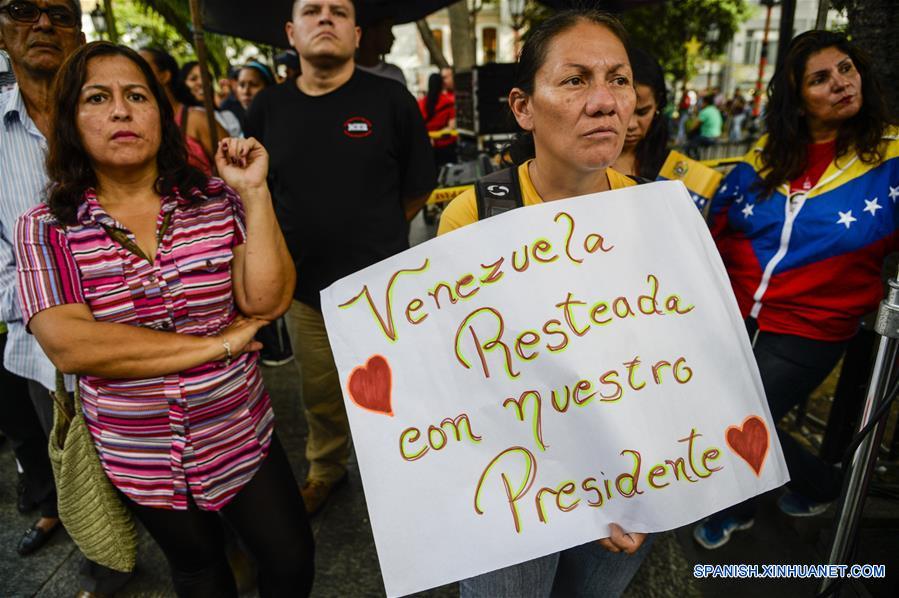 CARACAS, diciembre 13, 2016 (Xinhua) -- Residentes participan durante una manifestación en apoyo al presidente venezolano Nicolás Maduro, en la Plaza Bolívar de la ciudad de Caracas, Venezuela, el 13 de diciembre de 2016. La mayoría opositora en la Asamblea Nacional de Venezuela aprobó el martes, en segunda discusión, un acuerdo de declaración que responsabiliza al presidente Nicolás Maduro de la crisis que afronta este país. (Xinhua/Str)