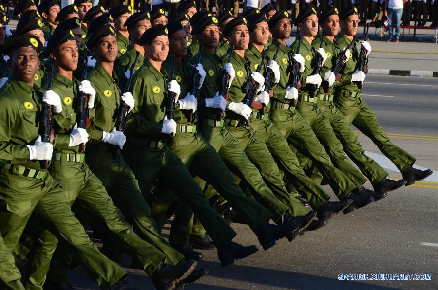 De inmediato comenzó el desfile militar con un componente histórico encabezado por una caballería de 128 "mambises" (rebeldes independentistas que de 1868 a 1898 lucharon contra el colonialismo español).