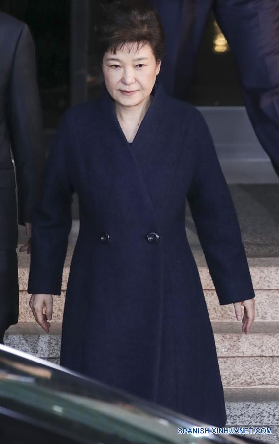 SEUL, 27 mar (Xinhua) --La expresidenta de Corea del Sur, Park Geun-hye, salió la oficina de los fiscales en Seúl, Corea del Sur, el 22 de marzo de 2017. (Xinhua/Lee Sang-ho)