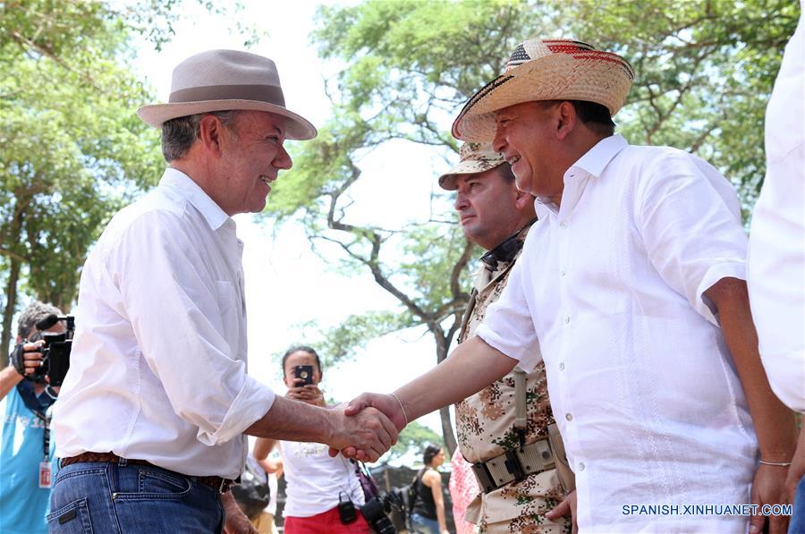 BOGOTA, 15 ago (Xinhua) -- El presidente colombiano, Juan Manuel Santos, presenció hoy la salida del último de los contenedores de Naciones Unidas (ONU) con armas de las Fuerzas Armadas Revolucionarias de Colombia (FARC) en el norte del país.