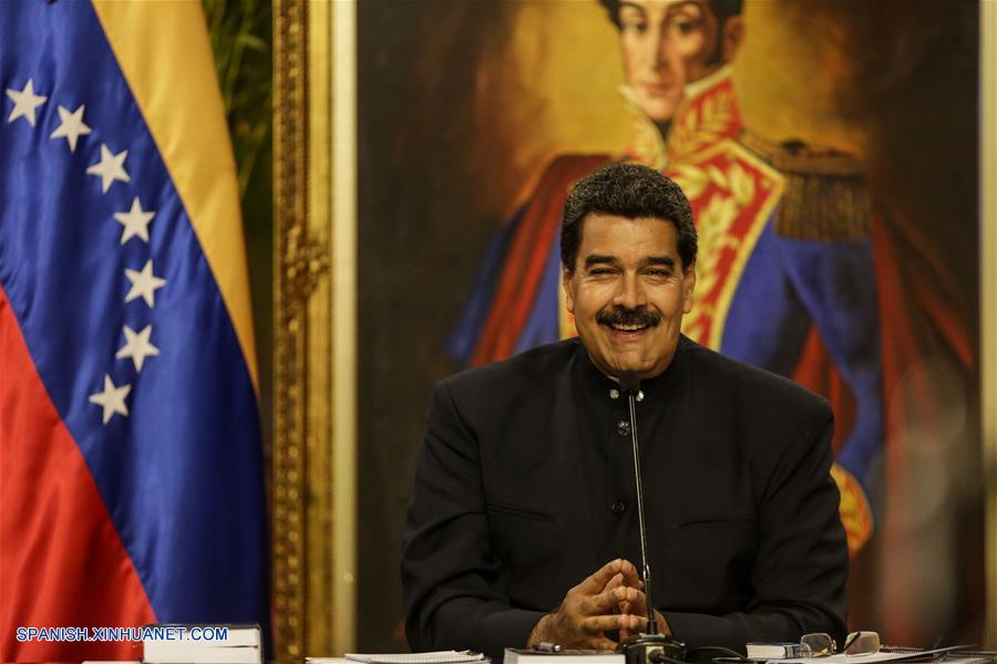 CARACAS, agosto 22, 2017 (Xinhua) -- El presidente de Venezuela, Nicolás Maduro, participa durante una conferencia de prensa con representantes de medios de comunicación nacionales e internacionales, en el Palacio de Miraflores en Caracas, capital de Venezuela, el 22 de agosto de 2017. El presidente de Venezuela, Nicolás Maduro, aseguró el martes que su Gobierno y el de Estados Unidos se encuentran "en el peor momento de sus relaciones", tras las amenazas de su homólogo Donald Trump de no descartar una "opción militar" contra el país. (Xinhua/Str)
