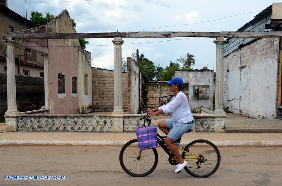 MATANZAS, septiembre 28, 2017 (Xinhua) -- Una mujer monta su bicicleta frente a una edificación dañada tras el paso del huracán Irma, en la provincia de Matanzas, Cuba, el 28 de septiembre de 2017. Un grupo de especialistas de la Sociedad China de la Cruz Roja evaluaron el jueves los daños ocasionados por el huracán Irma en las provincias cubanas de Villa Clara y Matanzas. Los expertos chinos, que el viernes regresan a Beijing, recorrieron zonas del litoral norte de Villa Clara, en el centro de la isla, y de Matanzas, en el occidente, donde pudieron comprobar los destrozos dejados por el meteoro a su paso por Cuba, el pasado 9 de septiembre. (Xinhua/Joaquín Hernández)