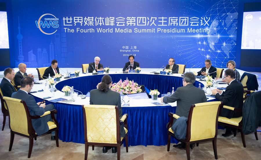 La cuarta reunión del presidium de la Cumbre Mundial de Medios se lleva a cabo en Shanghai, en el este de China, el 18 de noviembre de 2019. (Xinhua/Li Xiang)