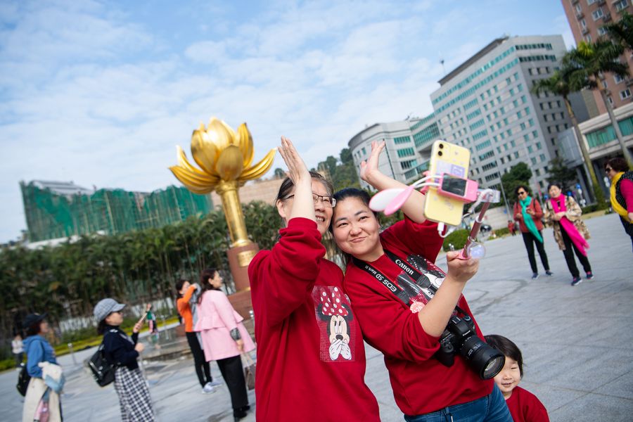 Visitantes en la Plaza Golden Lotus de Macao, sur de China, el 13 de diciembre de 2019. (Xinhua/Cheong Kam Ka)