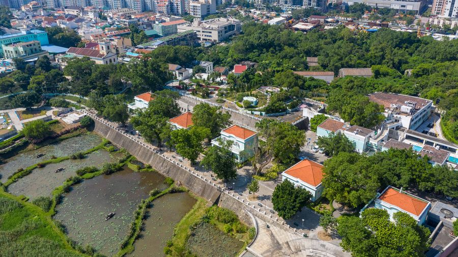 Vista aérea de las cercanías del Museo de Casas Taipa en Macao, sur de China, el 1 de noviembre de 2019. (Xinhua/Cheong Kam Ka)
