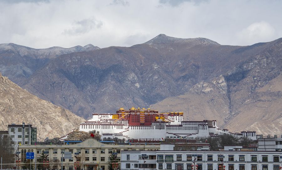La foto, tomada el 24 de febrero de 2020, muestra la ciudad de Lhasa, en la región autónoma del Tíbet, en el suroeste de China. La región autónoma lleva 36 días consecutivos sin reportar ningún caso sospechoso ni confirmado de COVID-19. (Xinhua/Sun Fei)