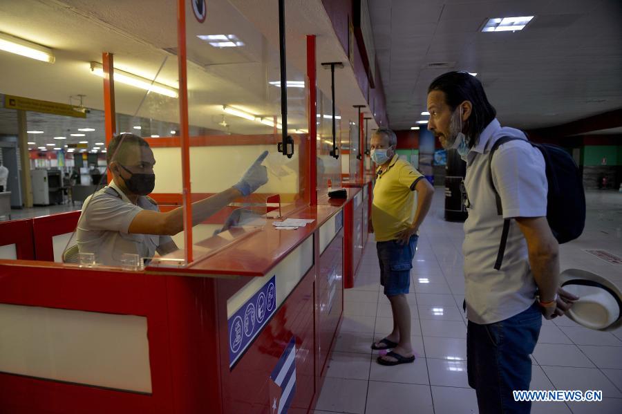 LA HABANA, 15 noviembre, 2020 (Xinhua) -- Un trabajador registra a un pasajero a su llegada al Aeropuerto Internacional José Martí, en La Habana, capital de Cuba, el 15 de noviembre de 2020. El aeropuerto internacional de La Habana, el más importante de Cuba, reabrió el domingo sus operaciones bajo estrictas medidas sanitarias, luego de casi ocho meses de permanecer cerrado al tránsito aéreo comercial, informaron las autoridades locales. (Xinhua/POOL/Yamil Lage/AFP)
