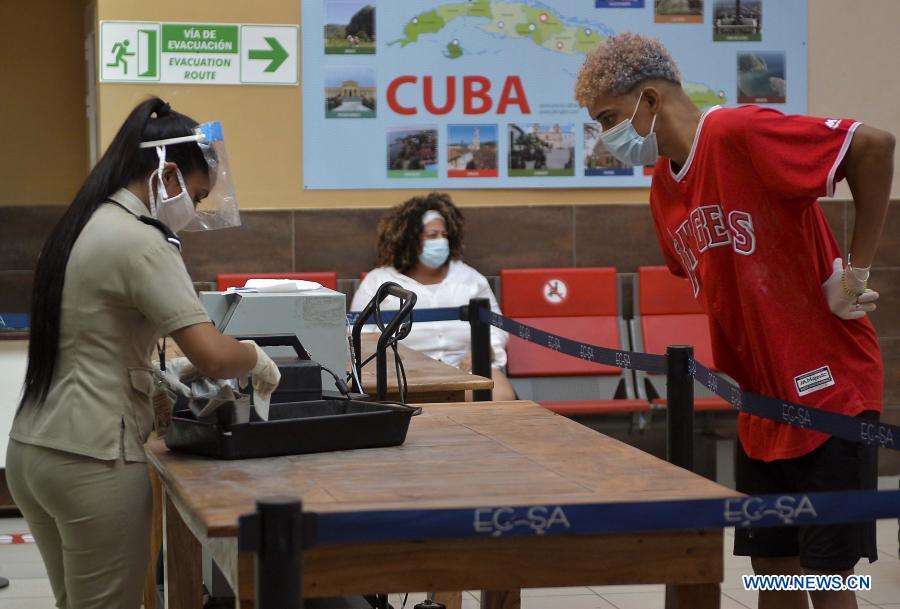 LA HABANA, 15 noviembre, 2020 (Xinhua) -- Una trabajadora revisa las pertenencias de un pasajero antes de viajar en el Aeropuerto Internacional José Martí, en La Habana, capital de Cuba, el 15 de noviembre de 2020. El aeropuerto internacional de La Habana, el más importante de Cuba, reabrió el domingo sus operaciones bajo estrictas medidas sanitarias, luego de casi ocho meses de permanecer cerrado al tránsito aéreo comercial, informaron las autoridades locales. (Xinhua/POOL/Yamil Lage/AFP)