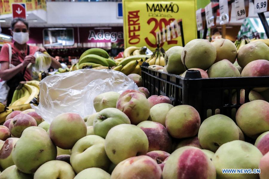 SAO PAULO, 3 diciembre, 2020 (Xinhua) -- Una mujer compra fruta en Sao Paulo, Brasil, el 3 de diciembre de 2020. La economía brasileña, la mayor de América Latina, creció un 7,7 por ciento en el tercer trimestre del año en comparación con el segundo, con lo que salió de la recesión técnica en que había entrado tras registrar un comportamiento negativo en los dos primeros trimestres de 2020, informó el jueves, el gobierno. (Xinhua/Rahel Patrasso)