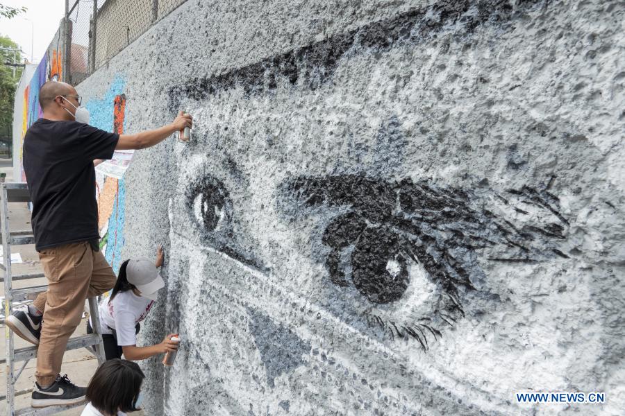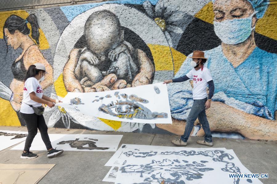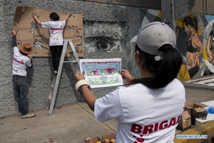 CIUDAD DE MEXICO, 7 diciembre, 2020 (Xinhua) -- Alumnos y docentes de la Facultad de Artes y Diseño de la Universidad Nacional Autónoma de México elaboran un mural en las paredes de la Escuela Nacional de Enfermería y Obstetricia como un homenaje a las enfermeras y enfermeros que están combatiendo la pandemia de la enfermedad causada por el nuevo coronavirus (COVID-19), en la Ciudad de México, capital de México, el 7 de diciembre de 2020. Autoridades de América Latina insisten en el llamado a la población de mantener, y si es necesario extremar, las medidas contra la COVID-19 ante el incremento de casos y muertes en las últimas semanas y más aún con la proximidad de las fiestas de Navidad y Fin de Año.(Xinhua/Luis Licona)