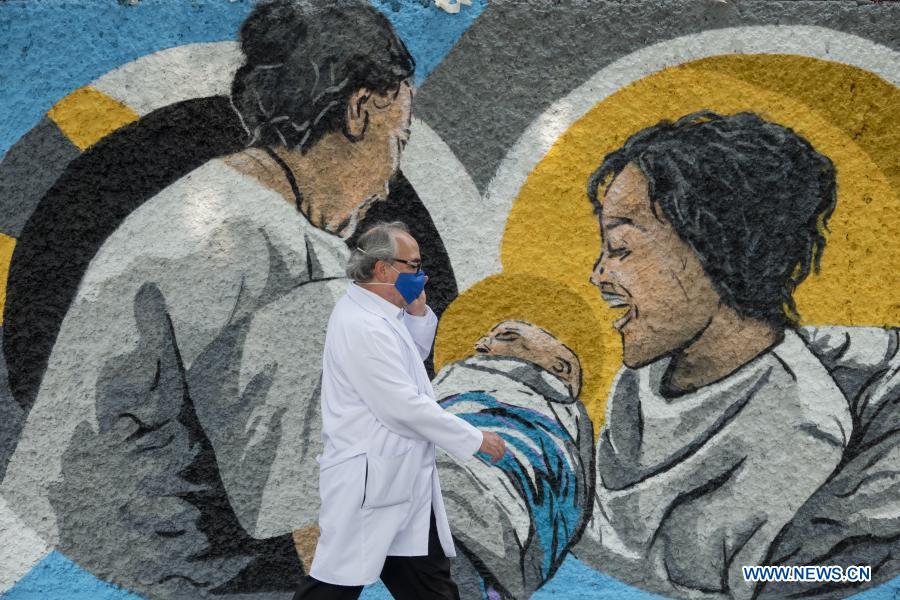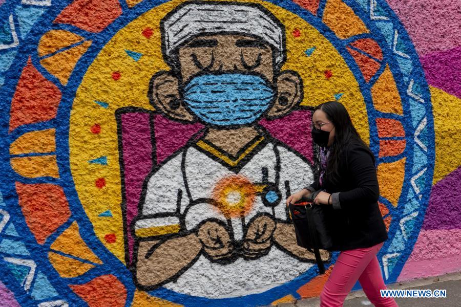 CIUDAD DE MEXICO, 7 diciembre, 2020 (Xinhua) -- Un trabajador de la salud camina frente a un mural elaborado por alumnos y docentes de la Facultad de Artes y Diseño de la Universidad Nacional Autónoma de México en las paredes de la Escuela Nacional de Enfermería y Obstetricia como un homenaje a las enfermeras y enfermeros que están combatiendo la pandemia de la enfermedad causada por el nuevo coronavirus (COVID-19), en la Ciudad de México, capital de México, el 7 de diciembre de 2020. Autoridades de América Latina insisten en el llamado a la población de mantener, y si es necesario extremar, las medidas contra la COVID-19 ante el incremento de casos y muertes en las últimas semanas y más aún con la proximidad de las fiestas de Navidad y Fin de Año.(Xinhua/Luis Licona) Autoridades de América Latina insisten en el llamado a la población de mantener, y si es necesario extremar, las medidas contra la COVID-19 ante el incremento de casos y muertes en las últimas semanas y más aún con la proximidad de las fiestas de Navidad y Fin de Año.