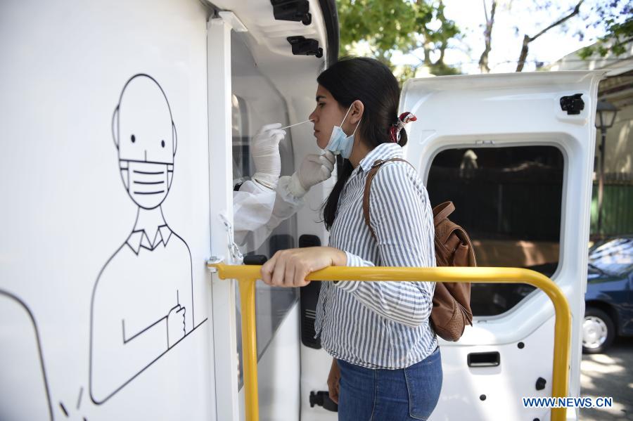 MONTEVIDEO, 8 diciembre, 2020 (Xinhua) -- Una mujer se somete a una prueba de detección de la enfermedad causada por el nuevo coronavirus (COVID-19) en una unidad móvil que realiza pruebas gratuitas de la COVID-19, en el barrio del Prado, en Montevideo, capital de Uruguay, el 8 de diciembre de 2020. Autoridades de América Latina insisten en el llamado a la población de mantener, y si es necesario extremar, las medidas contra la COVID-19 ante el incremento de casos y muertes en las últimas semanas y más aún con la proximidad de las fiestas de Navidad y Fin de Año. (Xinhua/Nicolás Celaya)