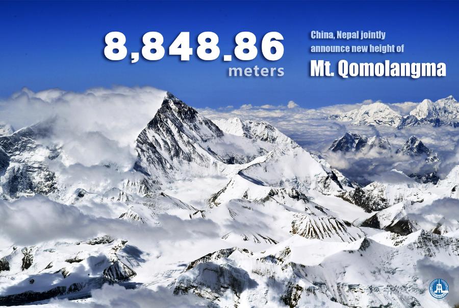 BEIJING, 8 dic (Xinhua) -- La nueva altura del monte Qomolangma, el pico más alto del mundo, es de 8.848,86 metros, anunciaron conjuntamente hoy martes China y Nepal.