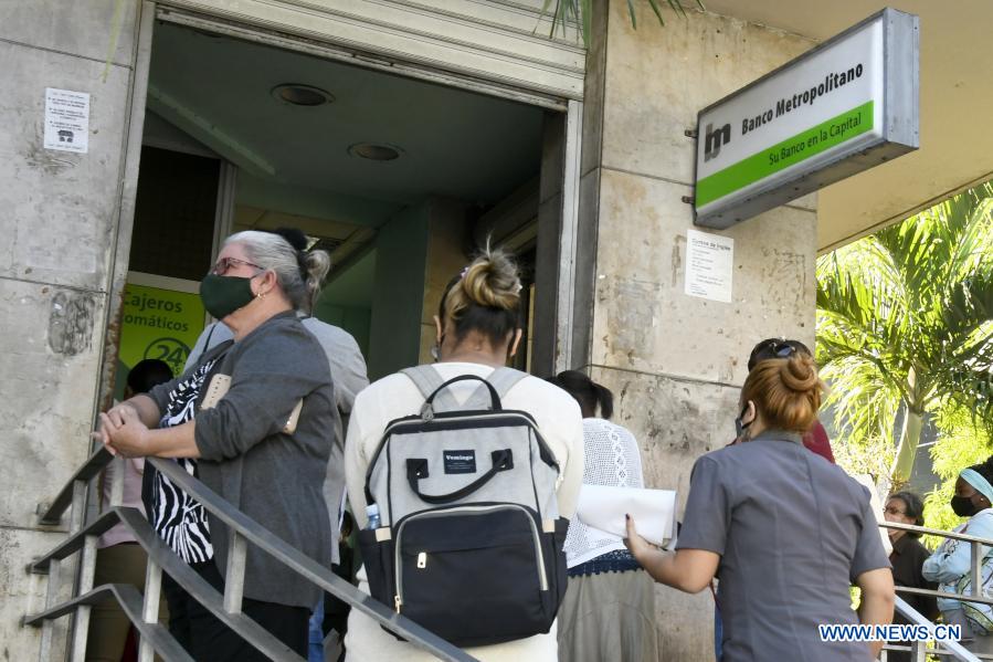 LA HABANA, 11 diciembre, 2020 (Xinhua) -- Personas se forman para ingresar a una sucursal del Banco Metropolitano, en la barriada del Vedado, en La Habana, capital de Cuba, el 11 de diciembre de 2020. Los cubanos amanecieron el viernes con grandes expectativas, tras el anuncio realizado por el gobierno sobre próximos cambios económicos, que incluyen un ordenamiento monetario y cambiario. (Xinhua/Joaquín Hernández)