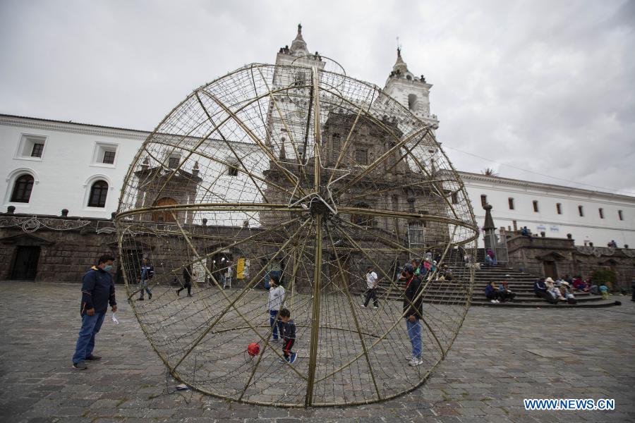 QUITO, 25 diciembre, 2020 (Xinhua) -- Personas descansan en la Plaza de San Francisco, durante el día de Navidad, en el Centro Histórico de Quito, capital de Ecuador, el 25 de diciembre de 2020. (Xinhua/Santiago Armas)