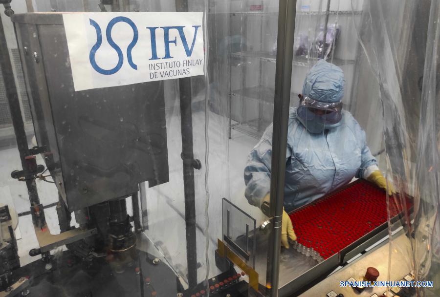 Imagen del 20 de enero de 2021 de una técnica trabajando en la Planta Procesadora de Envases y Asépticos de Vacunas del Instituto Finlay de Vacunas en La Habana, capital de Cuba. Cuba se prepara para producir 100 millones de dosis de la vacuna Soberana 02 contra la enfermedad causada por el nuevo coronavirus (COVID-19) y tiene el propósito de inmunizar este año a toda la población del país, que está por alcanzar los 20.000 casos acumulados desde el inicio de la pandemia, afirmó el jueves, el director general del Instituto Finlay de Vacunas, Vicente Vérez. (Xinhua/POOL/Yamil Lage/AFP)