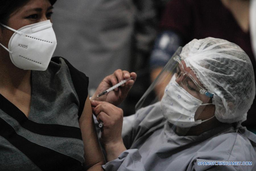 Una trabajadora médica recibe una dosis de la vacuna rusa Sputnik V contra la enfermedad causada por el nuevo coronavirus (COVID-19) durante la campaña de vacunación contra la COVID-19, en el Hospital del Norte, en El Alto, Bolivia, el 30 de enero de 2021. Bolivia comenzó la inmunización contra la COVID-19 con la vacuna rusa Sputnik V, que en esta primera etapa está dirigida al personal de salud. (Xinhua/Mateo Romay)