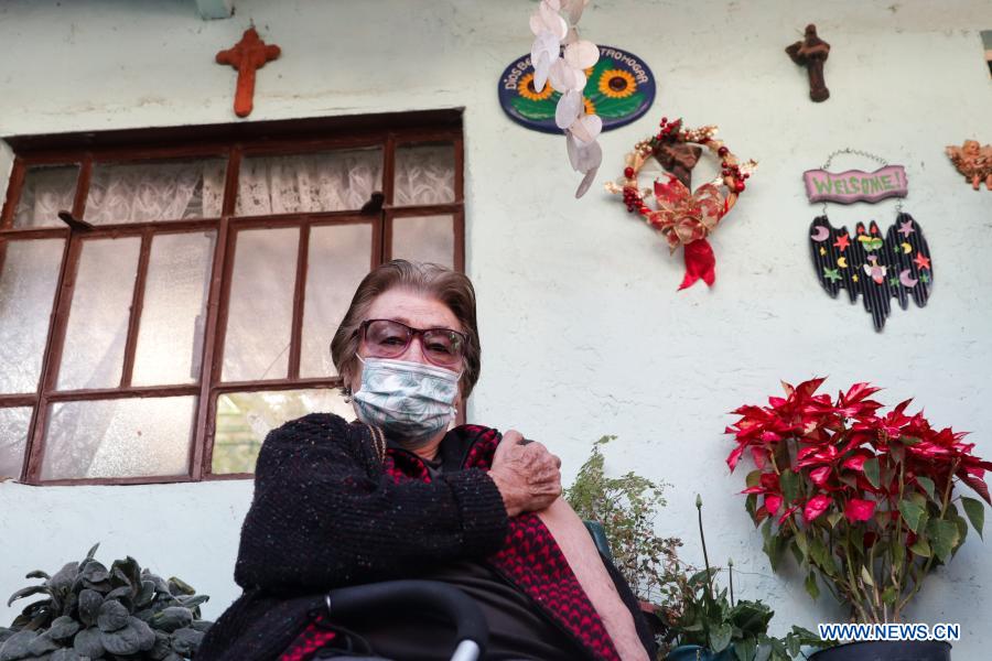 Dora Flores, de 82 años, descansa después de recibir una vacuna contra la enfermedad del nuevo coronavirus (COVID-19) en su domicilio, en la Ciudad de México, capital de México, el 18 de febrero de 2021. México comenzó el lunes la segunda etapa de su plan nacional de vacunación contra la COVID-19 que incluye la inmunización de más de 15 millones de adultos mayores que viven en el país. (Xinhua/Francisco Cañedo)