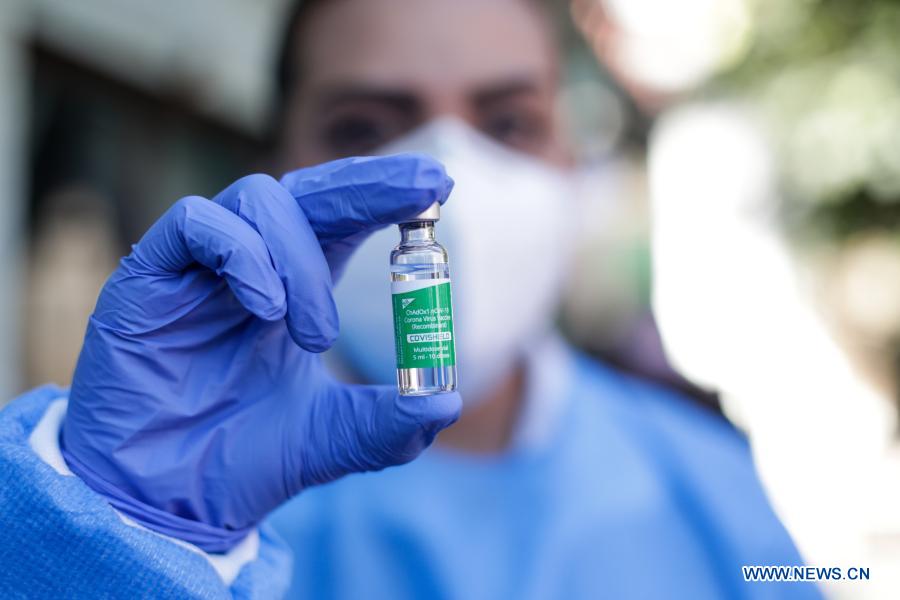 CIUDAD DE MEXICO, 18 febrero, 2021 (Xinhua) -- Una trabajadora de la salud sostiene un vial de una vacuna contra la enfermedad del nuevo coronavirus (COVID-19), en la Ciudad de México, capital de México, el 18 de febrero de 2021. México comenzó el lunes la segunda etapa de su plan nacional de vacunación contra la COVID-19 que incluye la inmunización de más de 15 millones de adultos mayores que viven en el país. (Xinhua/Francisco Cañedo)