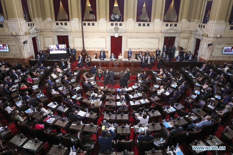 BUENOS AIRES, 1 de marzo, 2021 (Xinhua) -- Imagen proveída por la Agencia de Noticas Telám de la Apertura del 139º Periodo de Sesiones Ordinarias del Congreso, encabezada por el presidente argentino, Alberto Fernández, en Buenos Aires, Argentina, el 1 de marzo de 2021. El presidente de Argentina, Alberto Fernández, instó el lunes a profundizar el multilateralismo y la distribución mundial equitativa de vacunas contra la enfermedad del nuevo coronavirus (COVID-19). En su discurso durante la Apertura del 139 Período de Sesiones Ordinarias del Congreso, el mandatario recordó que en el último año propuso dos veces en sendas "cumbres del Grupo de los 20 un Pacto de Solidaridad Global y un Fondo Humanitario para hacer frente al impacto del coronavirus". (Xinhua/TELAM)