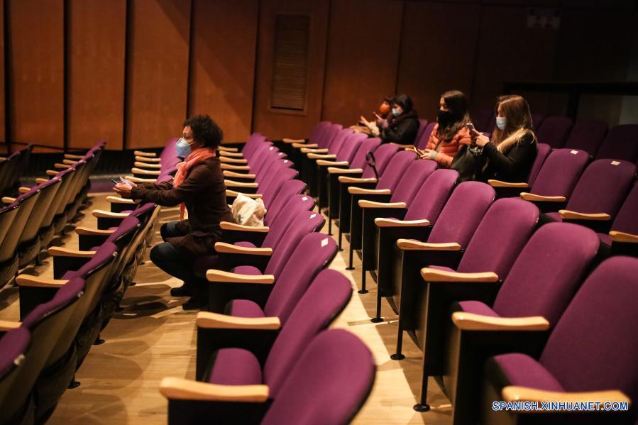 Imagen del 12 de marzo de 2021 de personas esperando a que comience una obra de danza, en el teatro Jorge Eliécer Gaitán, en Bogotá, Colombia. Tras todo un año de cierre ante la llegada de la enfermedad del nuevo coronavirus (COVID-19) a Colombia, el teatro Jorge Eliécer Gaitán abrió el viernes sus puertas bajo estrictas medidas de seguridad biológica para presentar la obra Campo Muerto, de la compañía colombiana Danza Común. (Xinhua/Jhon Paz)