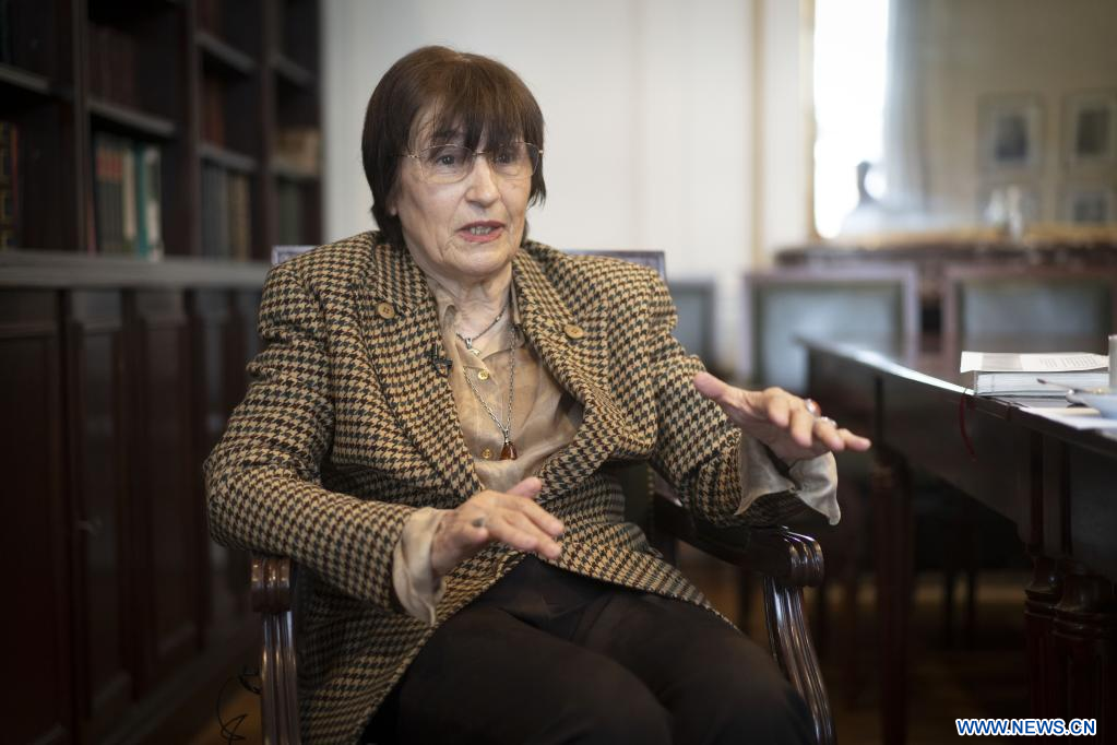 Imagen del 12 de octubre de 2022 de la académica argentina, Lilian Del Castillo, hablando durante una entrevista con la Agencia de Noticias Xinhua, en la ciudad de Buenos Aires, capital de Argentina. Del Castillo destacó el reciente llamado de la Organización de los Estados Americanos para que Reino Unido y Argentina reanuden el diálogo sobre la soberanía de las Islas Malvinas, archipiélago ubicado en el sur del Océano Atlántico que el país sudamericano reclama como propio y que Londres controla políticamente. (Xinhua/Martín Zabala)