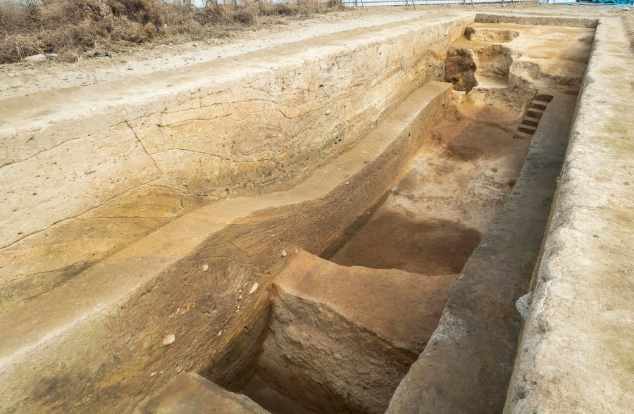 Esta foto, tomada el 28 de febrero de 2023, muestra una trinchera defensiva descubierta en el sitio de reliquias de Suyang, en el distrito de Yiyang de la ciudad de Luoyang, en la provincia central china de Henan. (Xinhua/Dong Gefei)
