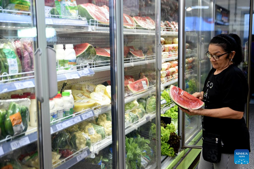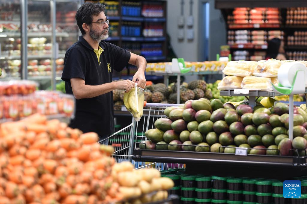 BRASILIA, 10 enero, 2025 (Xinhua) -- Un hombre realiza compras en un supermercado, en Brasilia, Brasil, el 10 de enero de 2025. El Índice Nacional de Precios al Consumidor Amplio subió un 0,52 por ciento en diciembre y terminó el año con un acumulado de 4,83 por ciento, superando el 4,62 por ciento de 2023, de acuerdo con el informe del Instituto Brasileño de Geografía y Estadística. (Xinhua/Lucio Tavora)