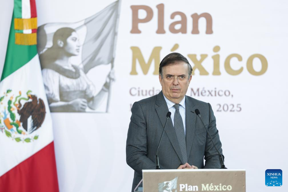 CIUDAD DE MEXICO, 13 enero, 2025 (Xinhua) -- El secretario mexicano de Economía, Marcelo Ebrard, habla durante la presentación del Plan México, en el Museo Nacional de Antropología, en la Ciudad de México, capital de México, el 13 de enero de 2025. (Xinhua/Francisco Cañedo)