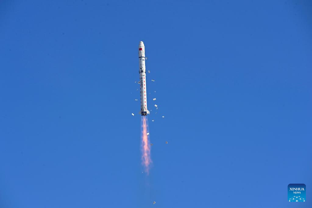 Un cohete portador Gran Marcha-2D transportando un satélite paquistaní despega desde el Centro de Lanzamiento de Satélites de Jiuquan, en el noroeste de China, el 17 de enero de 2025. El artefacto, denominado PRSC-EO1, fue lanzado a las 12:07 (hora de Beijing) y entró en su órbita prevista con éxito. (Xinhua/Wang Jiangbo)