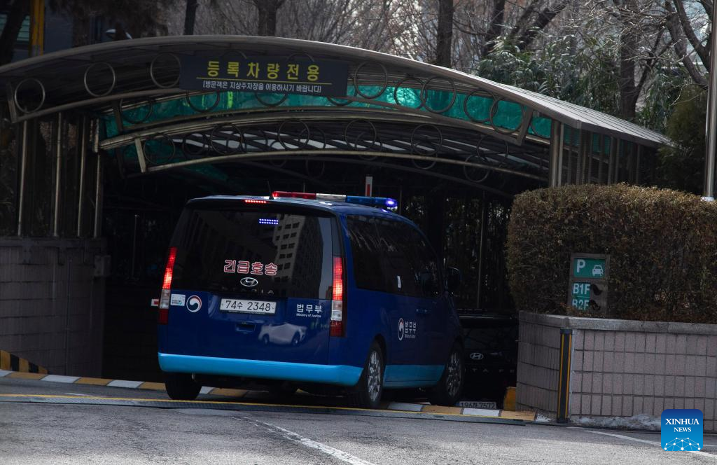 SEUL, 19 enero, 2025 (Xinhua) -- Imagen del 18 de enero de 2025 de un vehículo transportando al presidente destituido de República de Corea, Yoon Suk-Yeol, retirándose del Tribunal del Distrito Occidental de Seúl, en Seúl, República de Corea. Un tribunal de la República de Corea emitió una orden de detención contra el presidente destituido Yoon Suk-yeol en las primeras horas del domingo hora local, por su fallido intento de ley marcial. Con la orden, el período de detención de Yoon se extenderá hasta por 20 días, incluido el período de arresto. (Xinhua/Jun Hyosang)