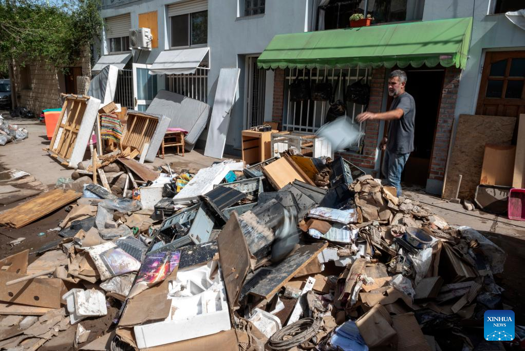 Un hombre retira mobiliario y escombros de su hogar, en la ciudad de Bahía Blanca, Argentina, el 10 de marzo de 2025. El Gobierno de Argentina anunció el domingo que decretará tres días de duelo nacional por el fallecimiento de al menos 16 personas tras un feroz temporal de lluvias que azotó el viernes la ciudad argentina de Bahía Blanca, a unos 690 kilómetros al suroeste de Buenos Aires. (Xinhua/Str)