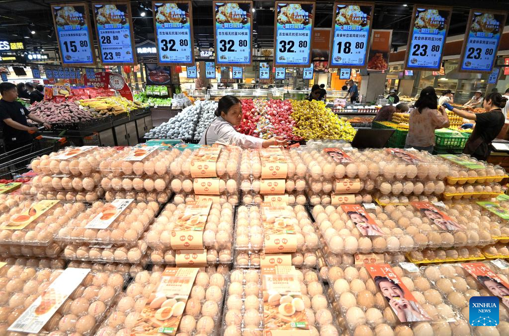 BEIJING, 9 junio, 2025 (Xinhua) -- Una clienta compra huevos en un supermercado, en la ciudad de Handan, en la provincia de Hebei, en el norte de China, el 9 de junio de 2025. El índice de precios al consumidor (IPC) de China, uno de los principales indicadores de la inflación, registró en mayo una caída interanual del 0,1 por ciento, según datos oficiales publicados el lunes. (Xinhua/Hao Qunying)