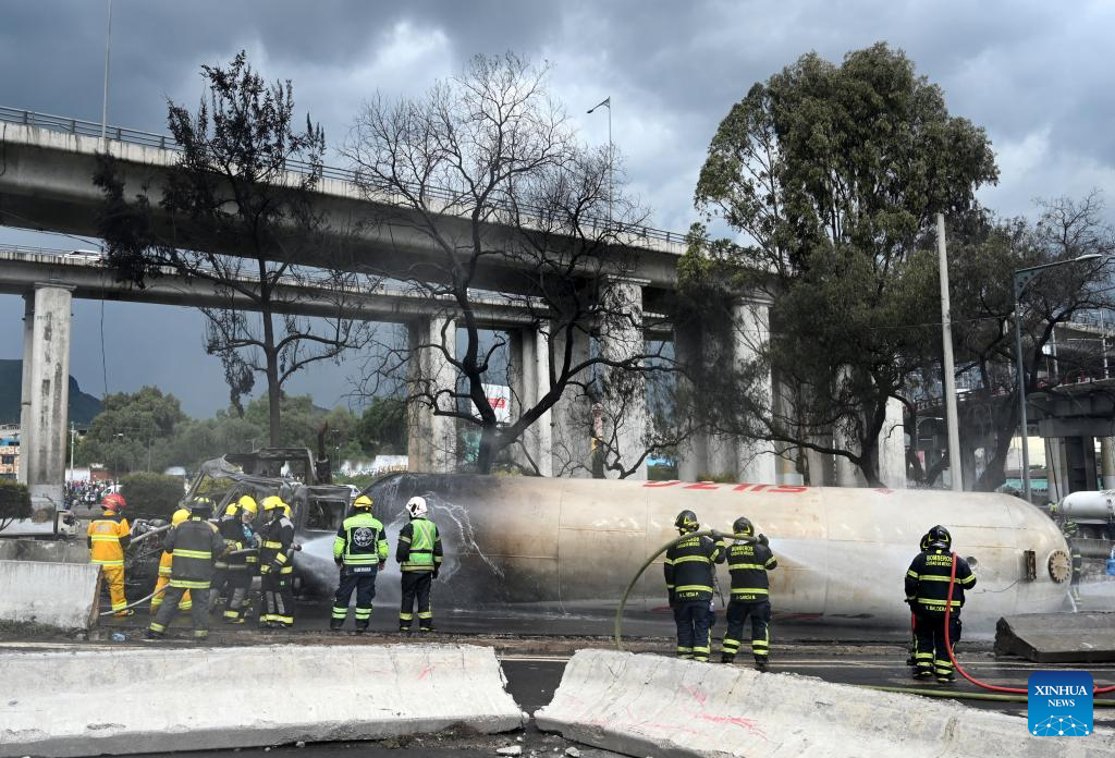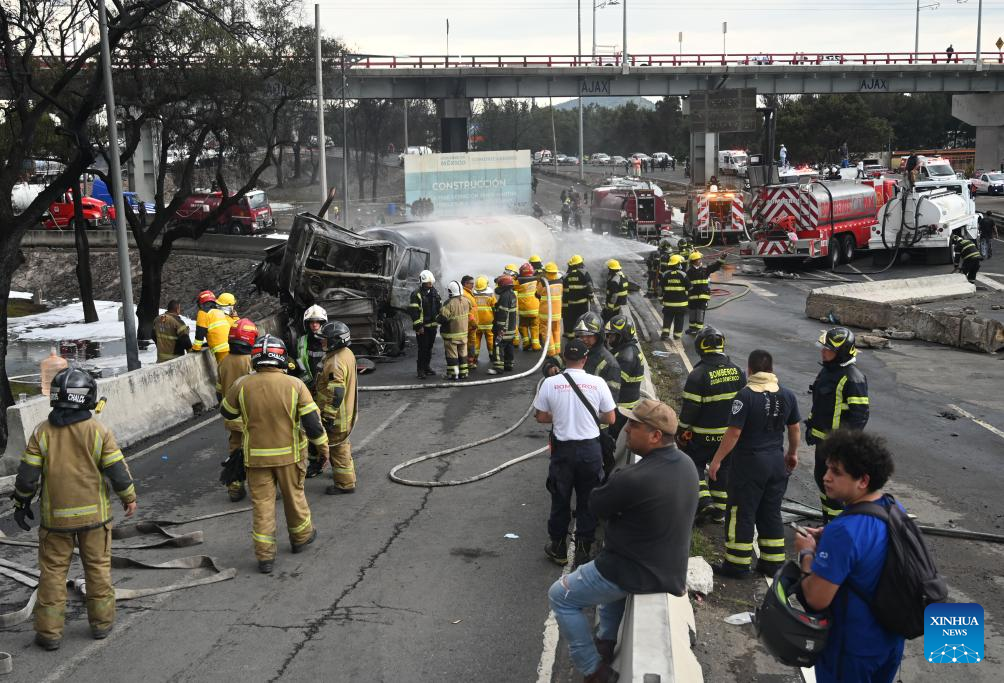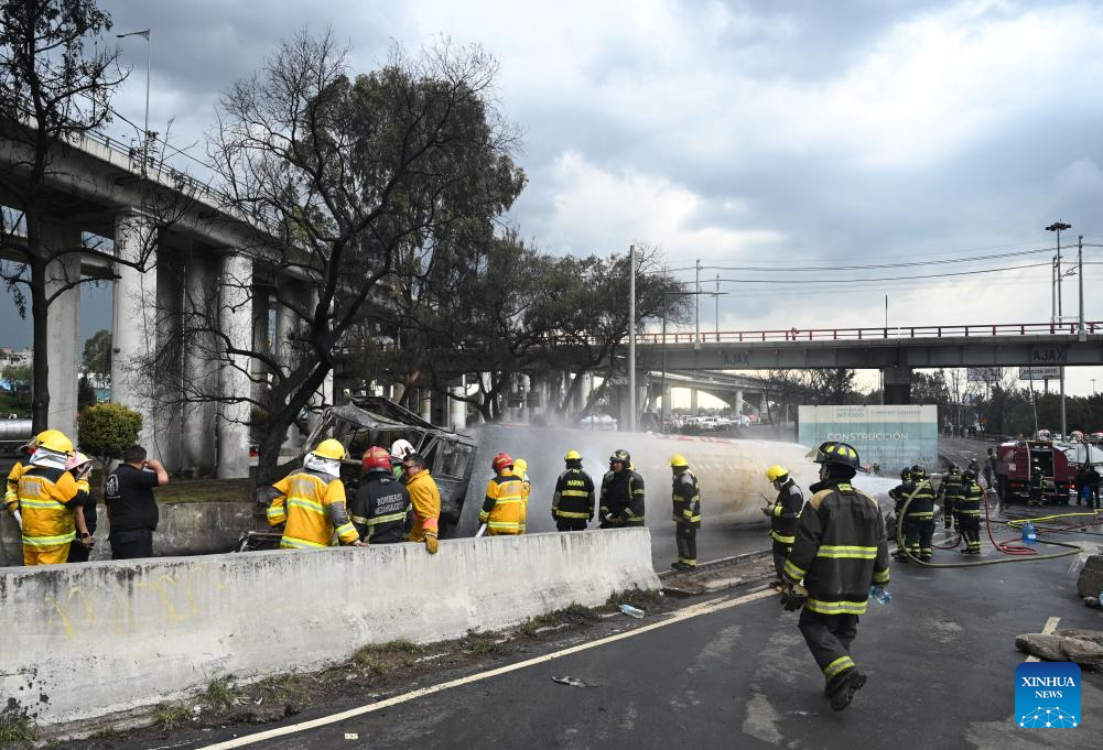 CIUDAD DE MEXICO, 10 septiembre, 2025 (Xinhua) -- Bomberos trabajan en el sitio donde se registró la volcadura y explosión de una pipa de gas LP (licuado de petróleo), en la Ciudad de México, capital de México, el 10 de septiembre de 2025. Al menos 57 personas lesionadas, 19 de ellas en estado de gravedad, es el saldo preliminar de un incendio derivado de la volcadura y explosión de una pipa de gas LP en el oriente de la Ciudad de México el miércoles, informaron autoridades locales. (Xinhua/Karen Alpide)