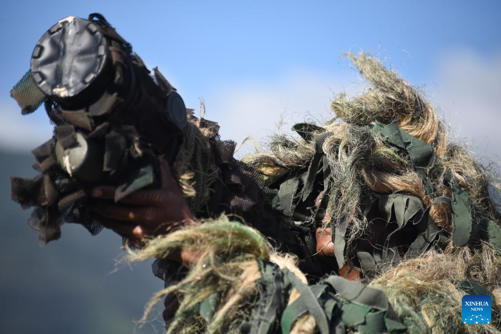 Un integrante de la Fuerza Armada Nacional Bolivariana porta un lanzador de cohetes durante una marcha, en Caracas, Venezuela, el 23 de septiembre de 2025. Miles de venezolanos se movilizaron el martes por la principal arteria de Caracas, la avenida Bolívar, en una masiva demostración de respaldo al presidente venezolano, Nicolás Maduro, y en rechazo a las políticas de desestabilización que, según denuncian, son promovidas por el Gobierno de Estados Unidos. (Xinhua/Marcos Salgado)