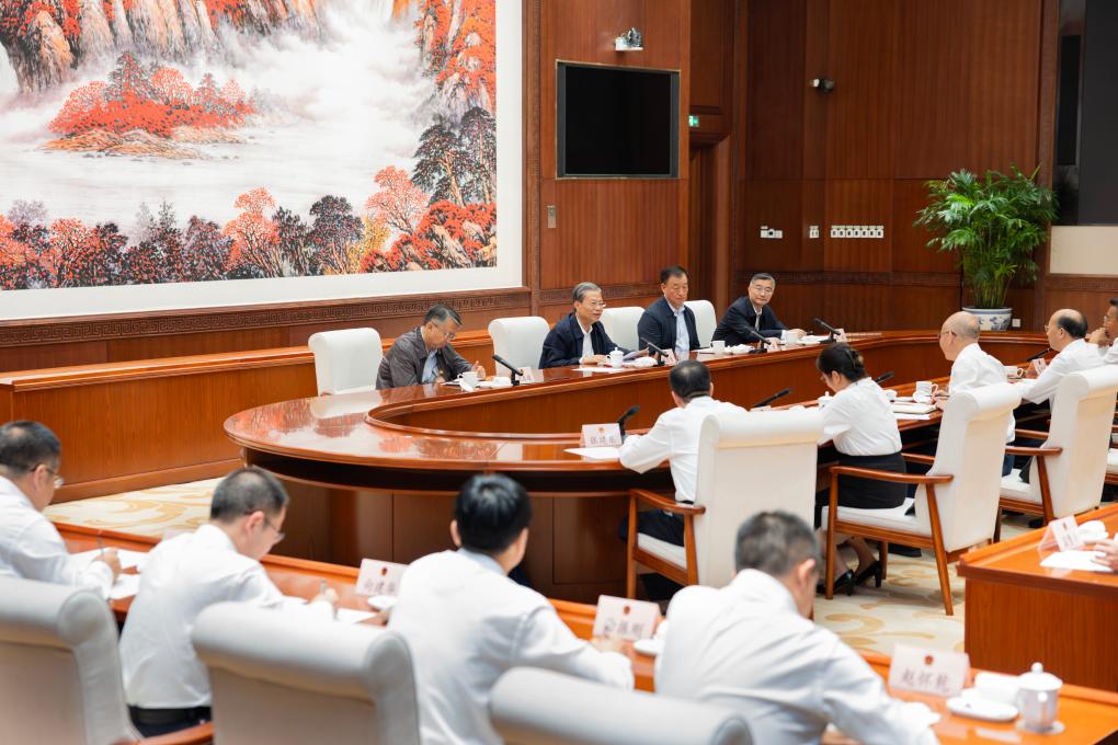 BEIJING, 28 septiembre, 2025 (Xinhua) -- Zhao Leji, miembro del Comité Permanente del Buró Político del Comité Central del Partido Comunista de China y presidente del Comité Permanente de la Asamblea Popular Nacional (APN), sostiene un simposio en el Comité Permanente de la Asamblea Popular Municipal de Beijing, en Beijing, capital de China, el 28 de septiembre de 2025. Zhao realizó una gira de investigación y estudio en Beijing el domingo. (Xinhua/Huang Jingwen)