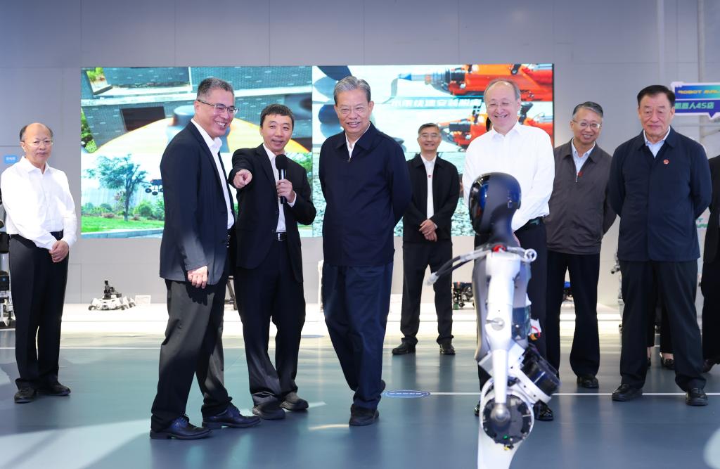 BEIJING, 28 septiembre, 2025 (Xinhua) -- Zhao Leji, miembro del Comité Permanente del Buró Político del Comité Central del Partido Comunista de China y presidente del Comité Permanente de la Asamblea Popular Nacional (APN), visita un centro de innovación de robots humanoides, en Beijing, capital de China, el 28 de septiembre de 2025. Zhao realizó una gira de investigación y estudio en Beijing el domingo. (Xinhua/Huang Jingwen)