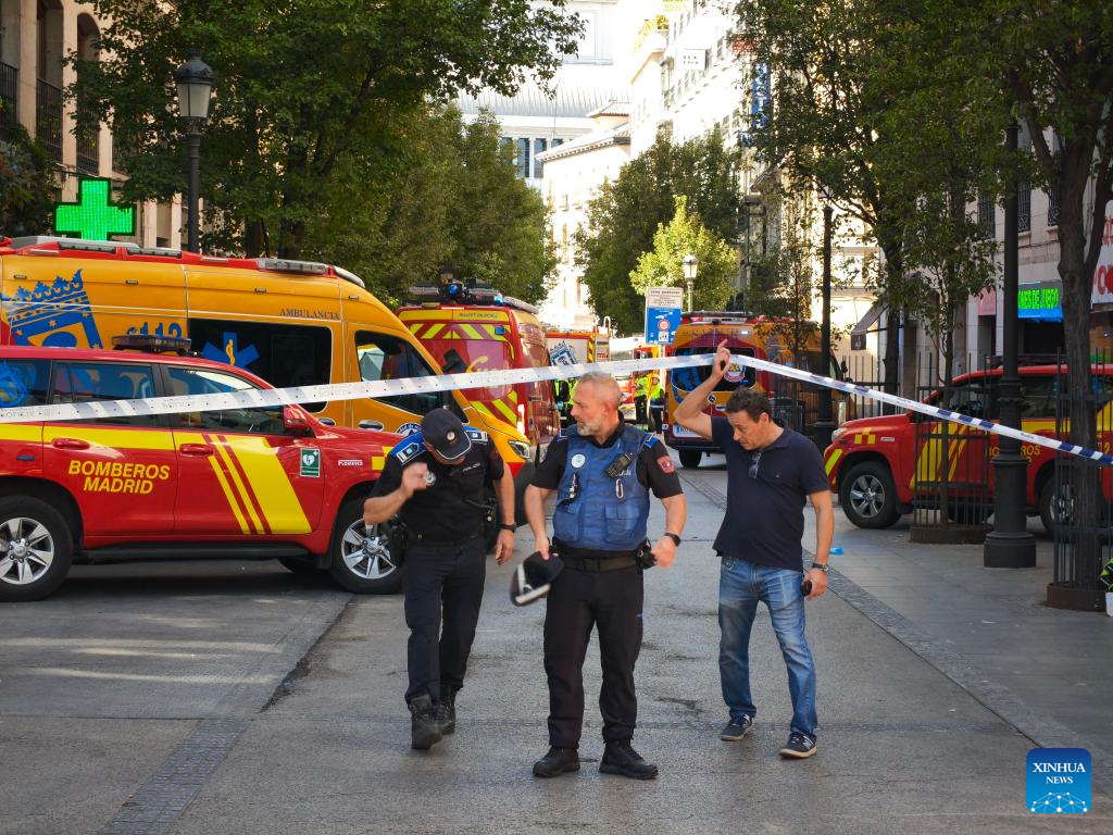 MADRID, 7 octubre, 2025 (Xinhua) -- Imagen tomada con un teléfono móvil el 7 de octubre de 2025 de una escena vista en el sitio del colapso de un edificio, en Madrid, España. Un edificio en renovación colapsó parcialmente el martes en el centro de Madrid, dejando al menos tres heridos y cuatro desaparecidos, informaron las autoridades. (Xinhua/Zhang Yuheng)