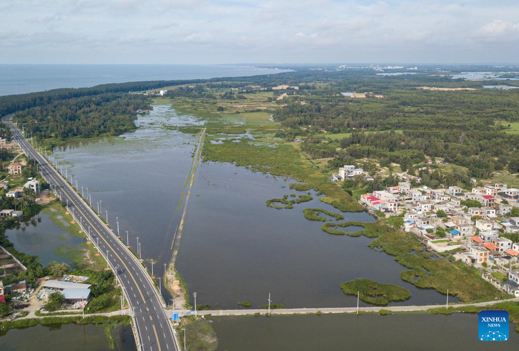 CHANGJIANG, 6 octubre, 2025 (Xinhua) -- Vista aérea tomada con un dron el 3 de octubre de 2025 del Parque Nacional del Humedal Haiwei, en el distrito autónomo de la etnia li de Changjiang, en la provincia de Hainan, en el sur de China. Tras la restauración ecológica y la construcción de instalaciones, el Parque Nacional de Humedales de Haiwei ha reabierto recientemente al público. El parque es un hábitat crucial para las aves migratorias. En los últimos años, gracias al refuerzo de las medidas de protección y vigilancia, el parque ha registrado 213 especies de aves. (Xinhua/Pu Xiaoxu)