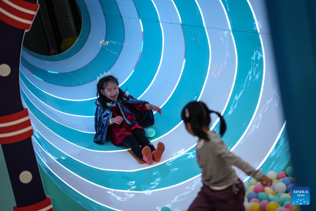 SHENYANG, 8 octubre, 2025 (Xinhua) -- Niños se divierten en un sitio cultural y creativo, que se ha transformado a partir de un granero, en Shenyang, en la provincia de Liaoning, en el noreste de China, el 8 de octubre de 2025. Varios patrimonios industriales de Shenyang de la provincia de Liaoning, en el noreste de China, han sido transformados en espacios públicos de ocio, parques industriales creativos y barrios singulares, ofreciendo a ciudadanos y turistas experiencias únicas durante las vacaciones del Día Nacional y el Festival de Medio Otoño de este año. (Xinhua/Pan Yulong)