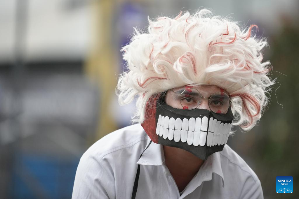 Un hombre disfrazado asiste al Salón del Ocio y la Fantasía (SOFA 2025), en el recinto ferial de Corferias, en Bogotá, capital de Colombia, el 10 de octubre de 2025. Con una vibrante oferta cultural, comercial y artística para los amantes del mundo "geek", el jueves comenzó la decimosexta edición del SOFA 2025. (Xinhua/Andrés Moreno)
