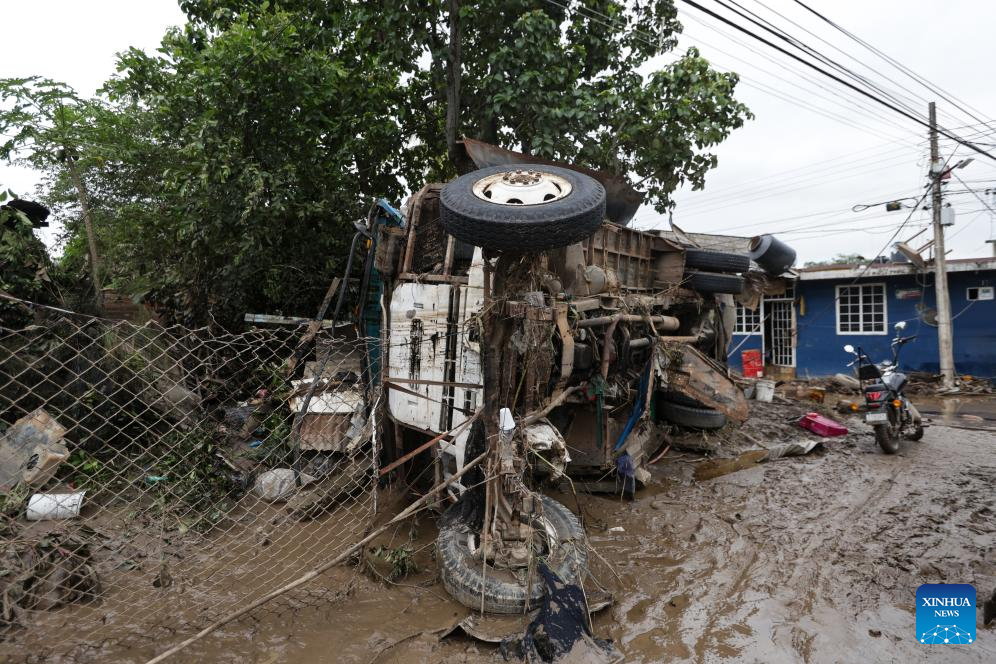 POZA RICA, 11 octubre, 2025 (Xinhua) -- Imagen del 11 de octubre de 2025 de un vehículo dañado por las lluvias, en la ciudad de Poza Rica, en el estado de Veracruz, México. A 37 subió el número de muertos por las intensas lluvias registradas en los últimos días en el centro y oriente de México, informó el sábado la gubernamental Coordinación Nacional de Protección Civil. (Xinhua/Francisco Cañedo)