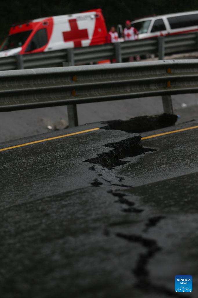 HUAUCHINANGO, 11 octubre, 2025 (Xinhua) -- Imagen del 11 de octubre de 2025 de un tramo de una autopista dañada a causa de las lluvias, en Huauchinango, en el estado de Puebla, México. A 37 subió el número de muertos por las intensas lluvias registradas en los últimos días en el centro y oriente de México, informó el sábado la gubernamental Coordinación Nacional de Protección Civil. (Xinhua/Francisco Cañedo)