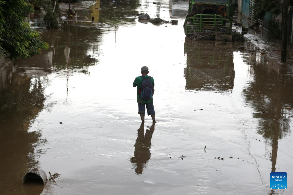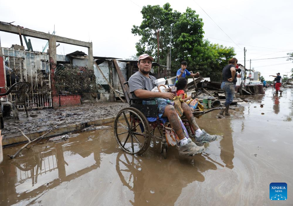 POZA RICA, 11 octubre, 2025 (Xinhua) -- Un hombre reacciona en una calle inundada por las lluvias, en la ciudad de Poza Rica, en el estado de Veracruz, México, el 11 de octubre de 2025. A 37 subió el número de muertos por las intensas lluvias registradas en los últimos días en el centro y oriente de México, informó el sábado la gubernamental Coordinación Nacional de Protección Civil. (Xinhua/Francisco Cañedo)