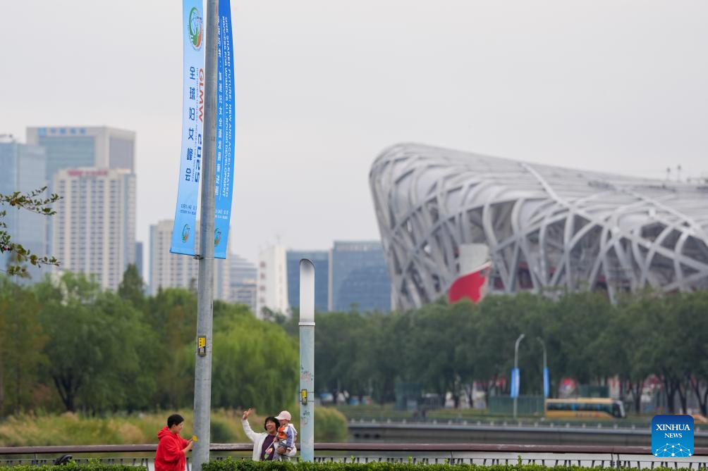 BEIJING, 12 octubre, 2025 (Xinhua) -- Carteles callejeros para la Conferencia de Líderes Mundiales sobre la Mujer son vistos, en Beijing, capital de China, el 12 de octubre de 2025. La Conferencia de Líderes Mundiales sobre la Mujer se llevará a cabo del 13 al 14 de octubre en Beijing. (Xinhua/Yan Linyun)