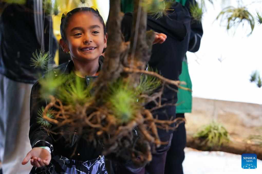 BOGOTA, 12 octubre, 2025 (Xinhua) -- Imagen del 11 de octubre de 2025 de una niña observando plantas en la IV edición de la Exposición "Bromelias: refugios de vida" en el Jardín Botánico José Celestino Mutis, en Bogotá, capital de Colombia. Con el título "Bromelias: refugios de vida", comenzó el viernes la IV edición de la exposición sobre las particularidades de estas plantas tropicales en el Jardín Botánico de Bogotá, evento que se enmarca en la celebración de los 70 años de este espacio dedicado a la divulgación científica y botánica en la capital colombiana. (Xinhua/Andrés Moreno)