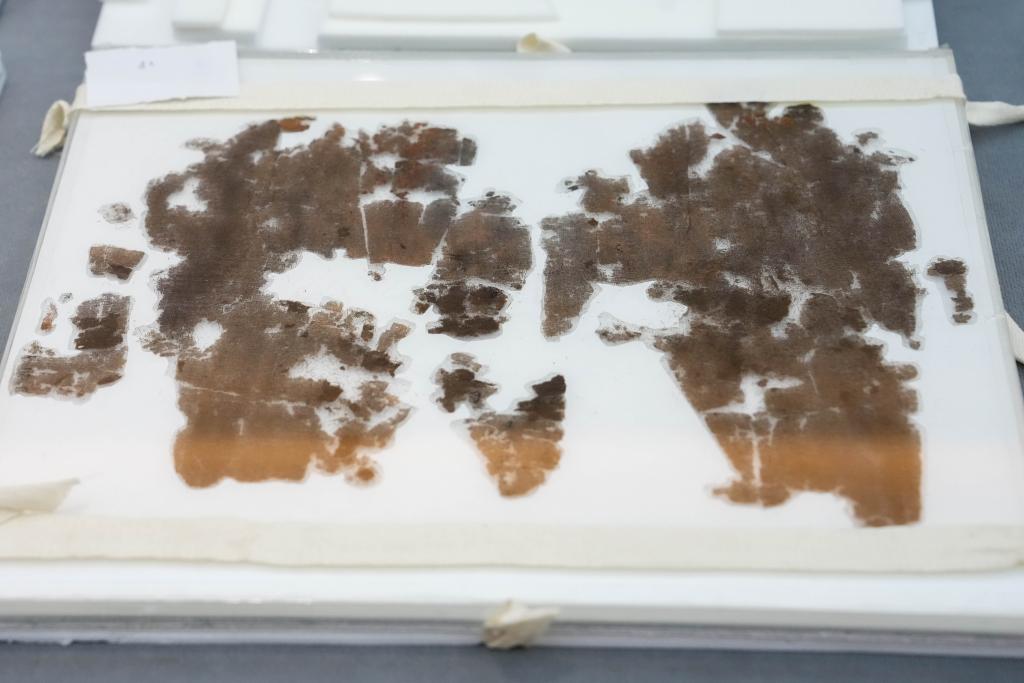 CHANGSHA, 13 octubre, 2025 (Xinhua) -- Imagen del 11 de septiembre de 2025 de partes de los manuscritos de seda de Zidanku en el Museo de Hunan, en Changsha, capital de la provincia de Hunan, en el centro de China. Dos volúmenes de manuscritos de seda chinos que datan de hace unos 2.300 años han sido devueltos al centro de China, 79 años después de que fueron sacados de contrabando del país, mediante la cooperación entre instituciones culturales chinas y estadounidenses. (Xinhua/Xue Yuge)