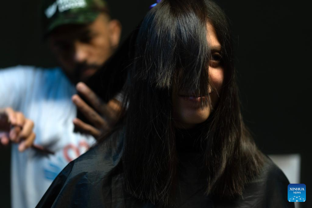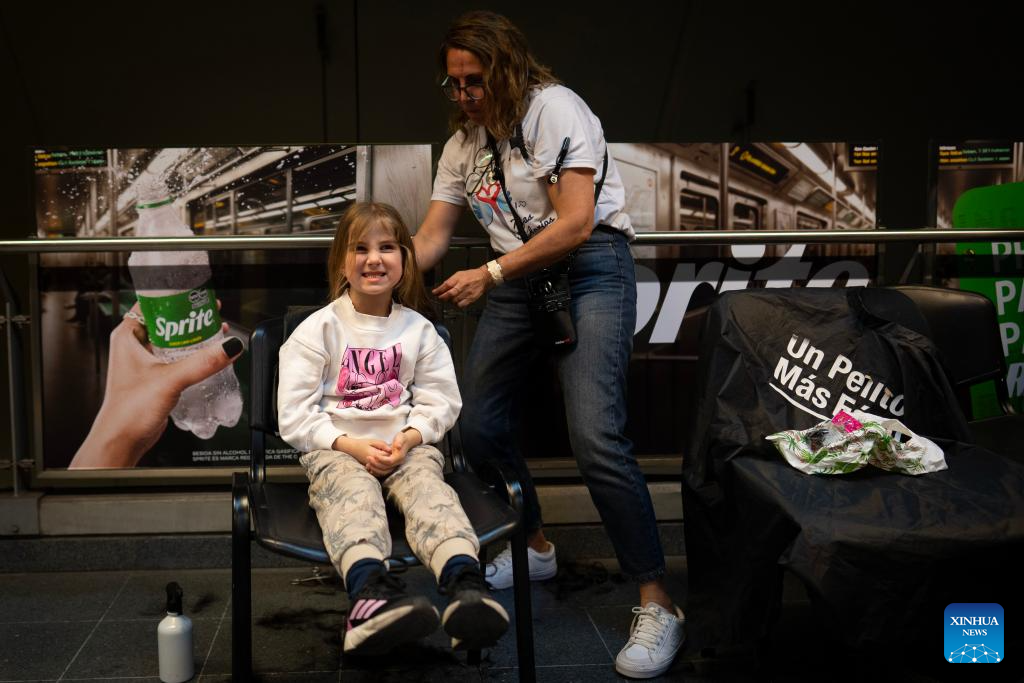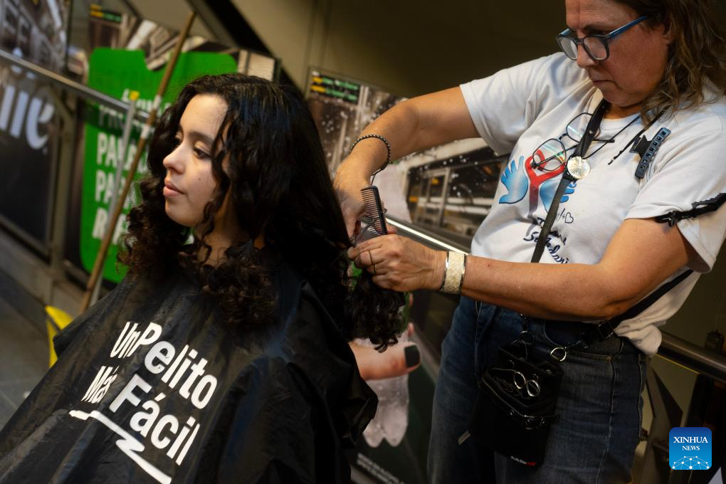 Los encargados de realizar los cortes de cabellos fueron peluqueros voluntarios de la Fundación Tijeras Solidarias, explicó a Xinhua Karina Cohen, una de las fundadoras de la Organización No Gubernamental (ONG) "Un Pelito Más Fácil".