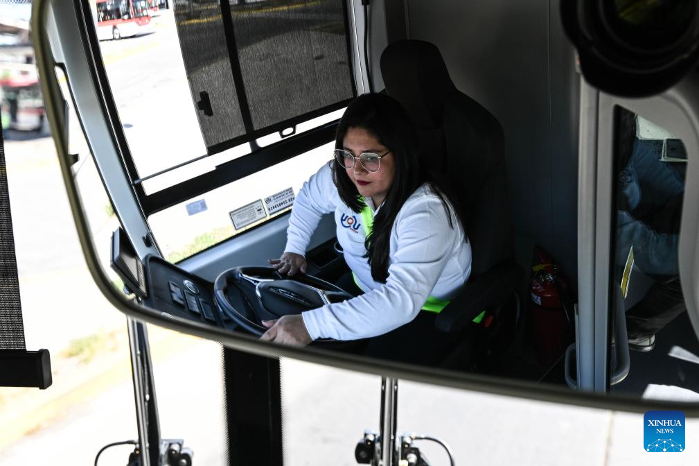 Imagen del 20 de octubre de 2025 de la conductora del transporte público, Yasna Parra, preparándose para conducir un autobús eléctrico chino, en el electroterminal El Conquistador, en la comuna de Maipú, en Santiago, capital de Chile. La electromovilidad en el transporte público chileno es una de las postales del país sudamericano en el mundo y lo ha logrado gracias al trabajo hecho entre los sectores públicos y privados, quienes han utilizado la tecnología china para desarrollarla, un ejemplo de colaboración en el Asia-Pacífico para avanzar en el cuidado de las personas y el medio ambiente. (Xinhua/Jorge Villegas)
